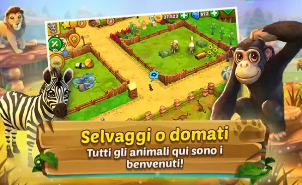 Lasciati incantare da questo straordinario gioco di zoo, disponibile sia come app che come gioco browser. Zoo 2: Animal Park ti fa immergere in un incantevole scenario di gioco con adorabili animali, una trama avvincente e molte interessanti quest. Costruisci recinti, pulisci i tuoi sentieri, acquisisci nuovi animali per il tuo zoo, occupati di loro e nutrili, alleva graziosi cuccioli e decora il tuo giardino zoologico con originali decorazioni. Con ogni nuovo livello sbloccherai nuove opzioni di personalizzazione. Gioca subito gratuitamente e immergiti nel fantastico mondo degli animali di Zoo 2: Animal Park. Andiamo!